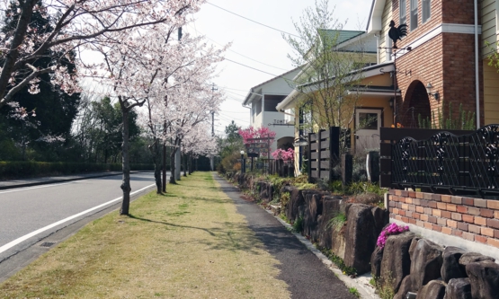 主要道路に面した近隣商業地域や低層一般住宅地区には、地区計画に合致した喫茶店、イタリアンレストラン、トイショップ、フラワーショップ、雑貨屋、建設会社等があり、地区内の利便性を高めるとともに、公共スペースの植栽には、春に桜並木が、夏に青々とした欅並木が出迎える、自然環境あふれる豊かな暮らしが育まれています。