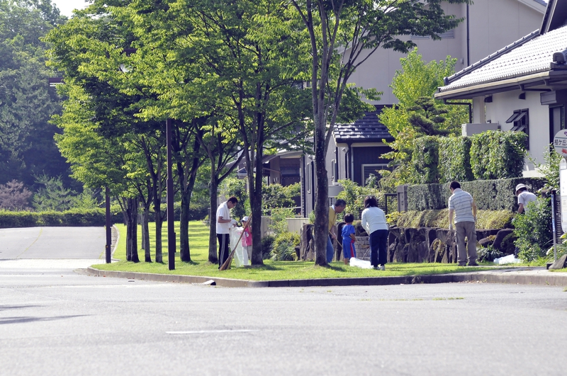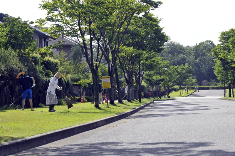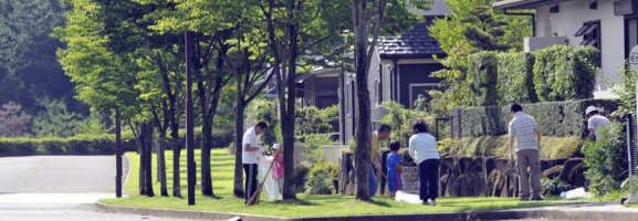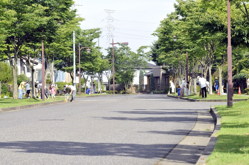地区計画に定めるフレンドリーガーデン及び公共道路の植栽や芝生の手入れは、それらに隣接する区画の住人が維持管理をお願いしています。また自治会は保有する道具を貸し出し、自発的に関われるようにサポートしています。