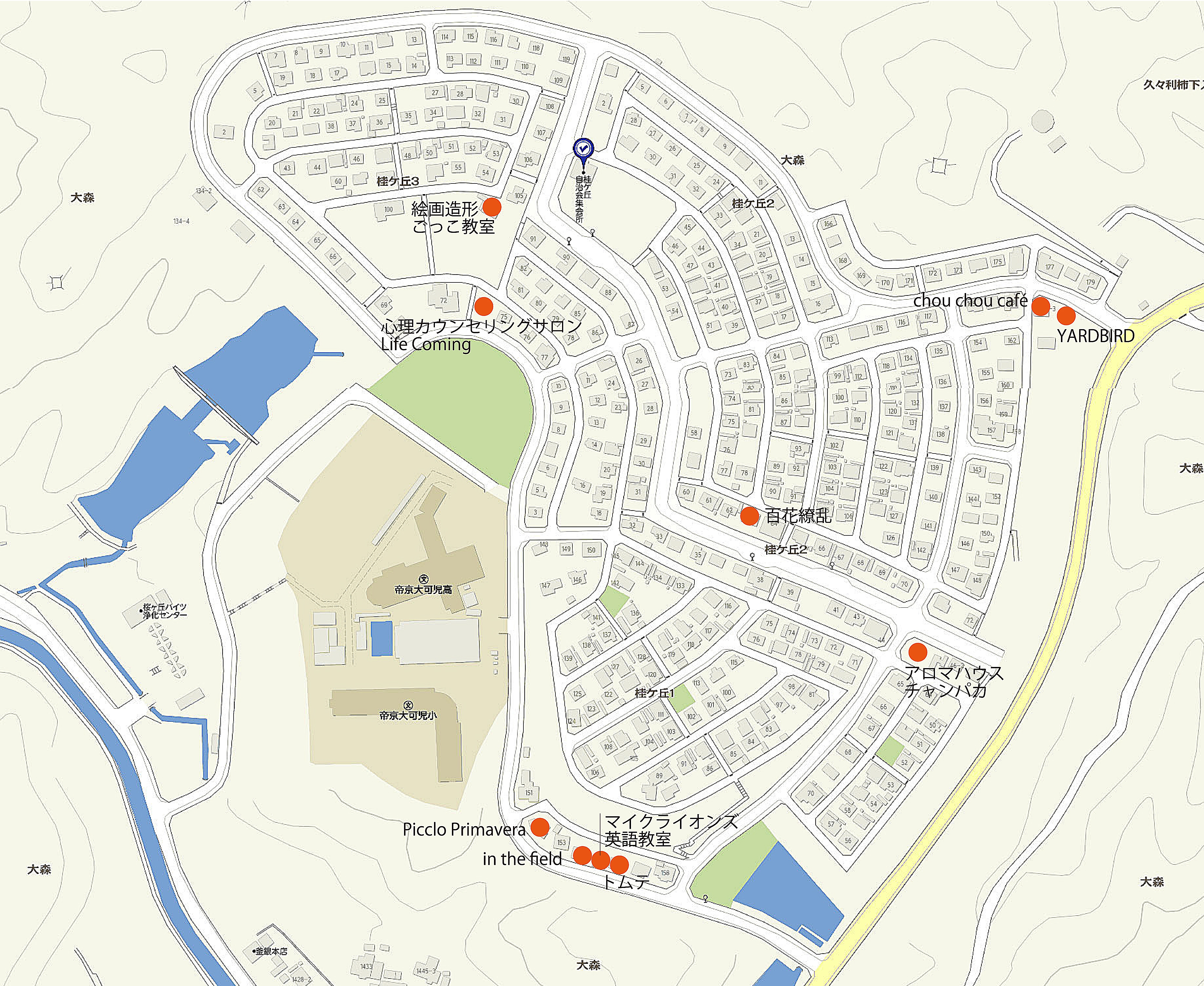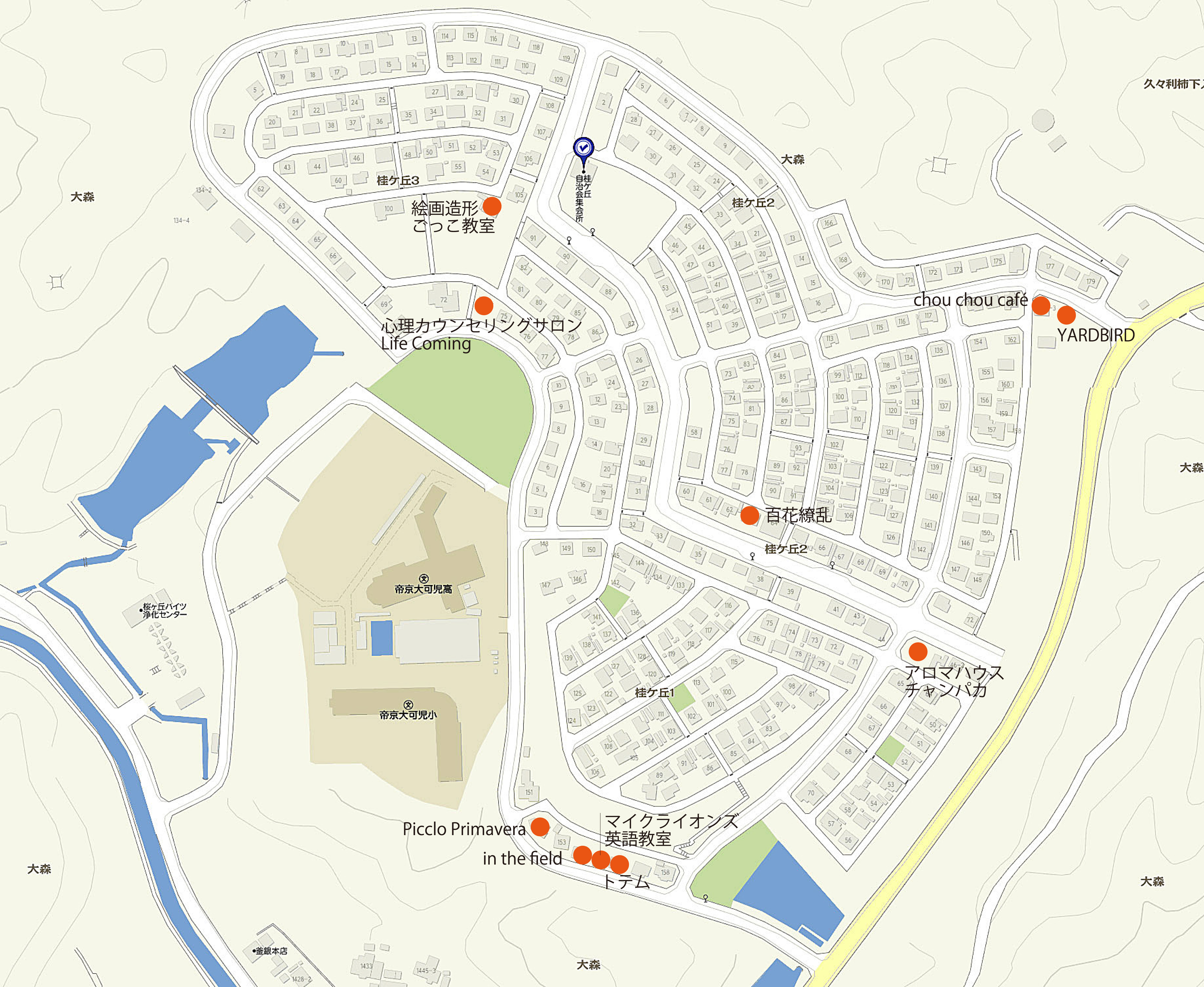 桂ヶ丘団地の地図外側をまわるのに徒歩で30分程度散歩コースに最適ですshop20map.jpg